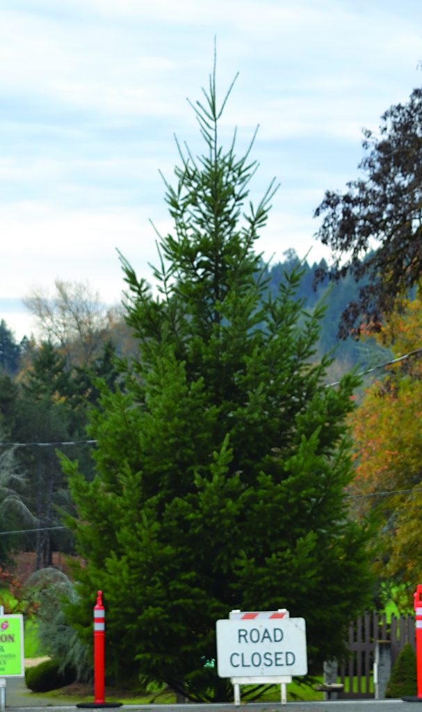 Last Tuesday, November 25, marked the annual trek after the city Christmas tree. Here is the tree after it was set in place by city workers.