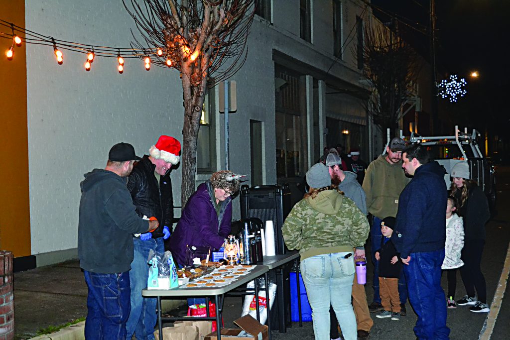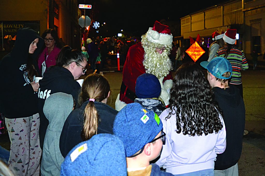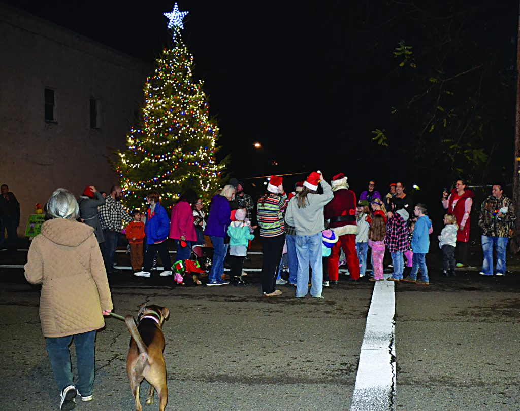 The City of Myrtle Creek Christmas tree came to light Saturday, December 6, as the centerpiece of the 19th annual Grand Illumination. City officials and staff handed out cookies, hot chocolate and coffee and following the lighting of the tree Santa made an appearance. This year the city again decided to close off Second Avenue between Main and Oak streets to allow for a safe corridor for citizens to view the lighting. It was also better for handing out the refreshments