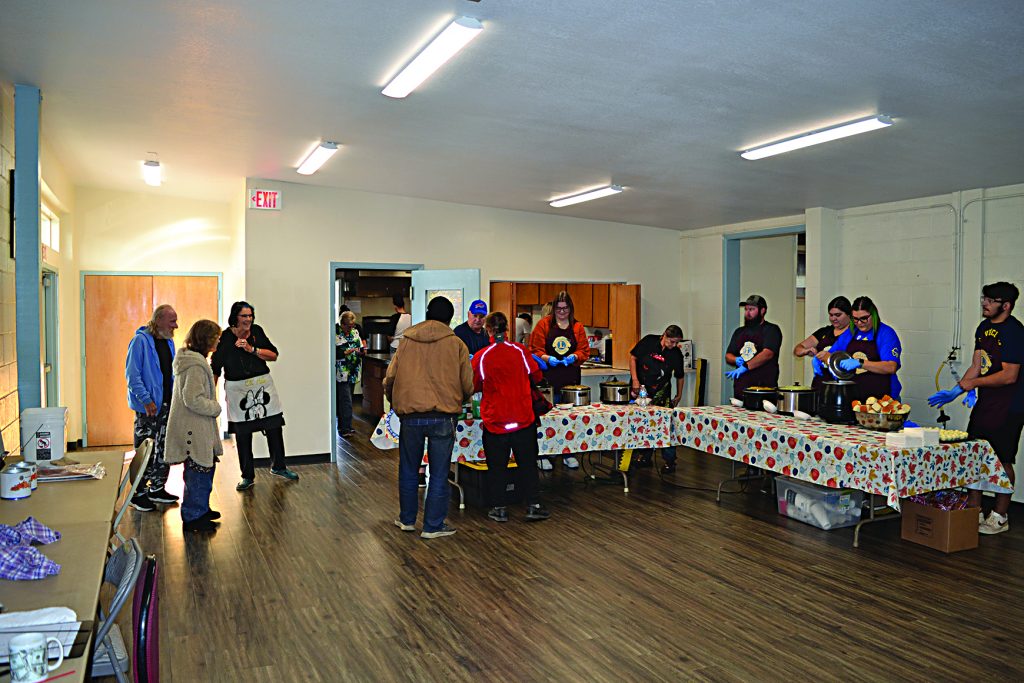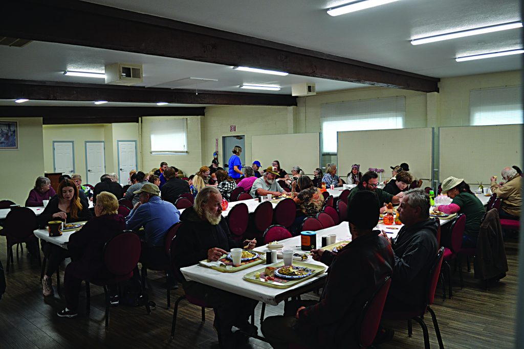 The annual Ray Munoz Memorial Thanksgiving Day Dinner, was held last Thursday, November 27, at the Myrtle Creek Community Center. Members of the Myrtle Creek Lions Club, the sponsor of the event, were very pleased to see the number of volunteers who came out to assist with the dinner. The Munoz family showed up in force to honor Ray. According to organizers there were approximately 175 people who came through line and received a meal. Lions President Janis Clark said that although the attendance numbers have not equaled those prior to the pandemic, the club now knows what to expect and plans to continue the dinner for many more years. (ABOVE) A local patron ponders what they would like to have for their meal.